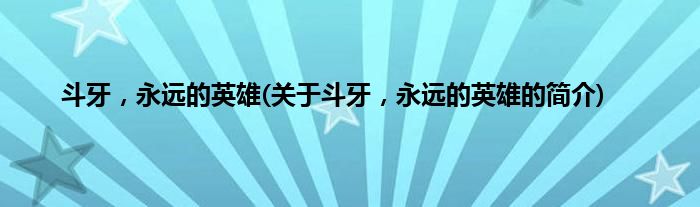本文关于斗牙,永远的英雄的简介就讲解完毕,希望对大家有所帮助。