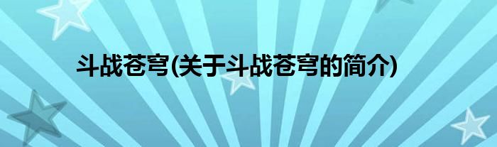 本文关于斗战苍穹的简介就讲解完毕,希望对大家有所帮助。