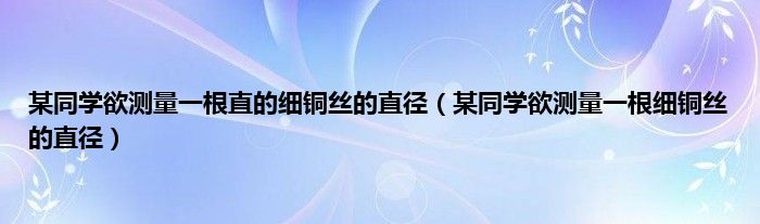 大家好,精选小编来为大家解答以上问题。某同学欲测量一根直的细铜丝的直径,某同学欲测量一根细铜丝的直径很多人还不知道,现在让我们一起来看看吧!