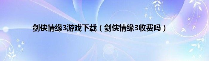 剑侠情缘3游戏下载(剑侠情缘3收费吗)