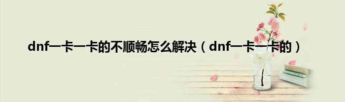 dnf一卡一卡的不顺畅怎么解决(dnf一卡一卡的)