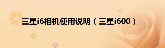 大家好,精选小编来为大家解答以上问题。三星i6相机使用说明,三星i600很多人还不知道,现在让我们一起来看看吧!