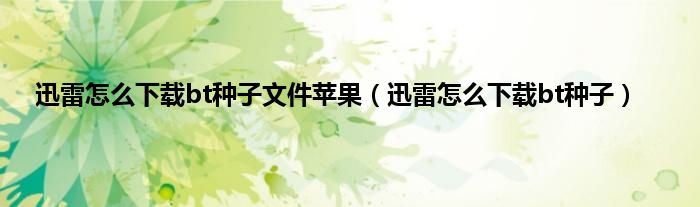 大家好,精选小编来为大家解答以上问题。迅雷怎么下载bt种子文件苹果,迅雷怎么下载bt种子很多人还不知道,现在让我们一起来看看吧!