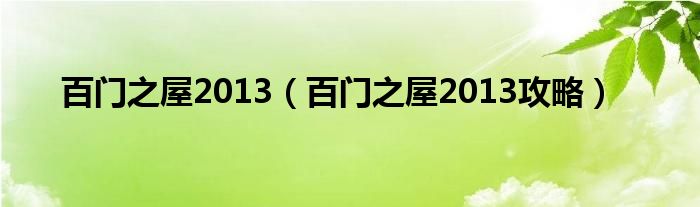 百门之屋2013(百门之屋2013攻略)