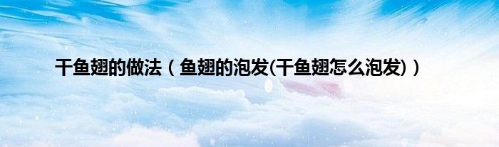 大家好,小科来为大家解答以上问题。干鱼翅的做法,鱼翅的泡发(干鱼翅怎么泡发)很多人还不知道,现在让我们一起来看看吧!