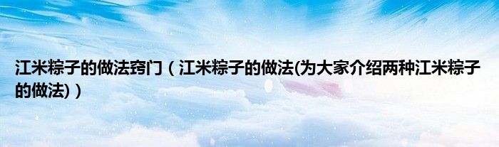 大家好,小科来为大家解答以上问题。江米粽子的做法窍门,江米粽子的做法(为大家介绍两种江米粽子的做法)很多人还不知道,现在让我们一起来看看吧!