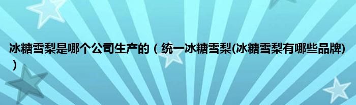 大家好,小科来为大家解答以上问题。冰糖雪梨是哪个公司生产的,统一冰糖雪梨(冰糖雪梨有哪些品牌)很多人还不知道,现在让我们一起来看看吧!