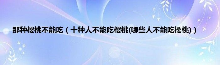 大家好,小科来为大家解答以上问题。那种樱桃不能吃,十种人不能吃樱桃(哪些人不能吃樱桃)很多人还不知道,现在让我们一起来看看吧!