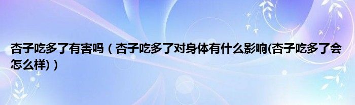 大家好,小科来为大家解答以上问题。杏子吃多了有害吗,杏子吃多了对身体有什么影响(杏子吃多了会怎么样)很多人还不知道,现在让我们一起来看看吧!