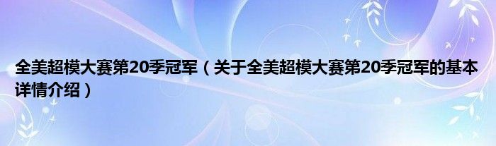本文关于全美超模大赛第20季冠军的基本详情介绍就讲解完毕,希望对大家有所帮助。