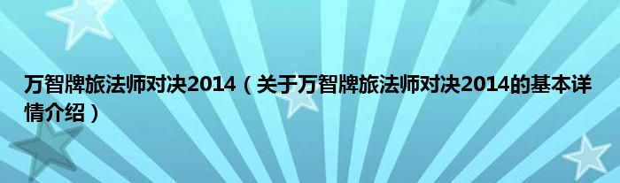 本文关于万智牌旅法师对决2014的基本详情介绍就讲解完毕,希望对大家有所帮助。