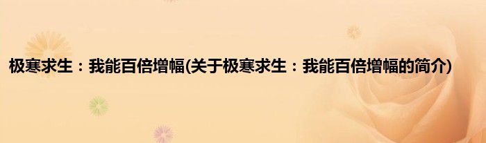 本文关于极寒求生:我能百倍增幅的简介就讲解完毕,希望对大家有所帮助。