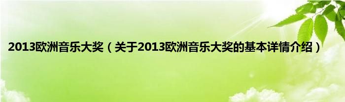 本文关于2013欧洲音乐大奖的基本详情介绍就讲解完毕,希望对大家有所帮助。