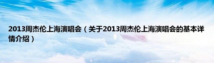 本文关于2013周杰伦上海演唱会的基本详情介绍就讲解完毕,希望对大家有所帮助。