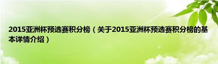 本文关于2015亚洲杯预选赛积分榜的基本详情介绍就讲解完毕,希望对大家有所帮助。