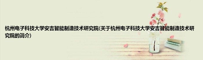 大家好,杭州电子科技大学安吉智能制造技术研究院,关于杭州电子科技大学安吉智能制造技术研究院的简介很多人还不知道,现在让我们一起来看看吧!