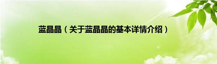 大家好我是小蝌蚪,蓝晶晶,关于蓝晶晶的基本详情介绍很多人还不知道,那么现在让我们一起来看看吧!