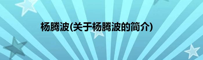 本文关于杨腾波的简介就讲解完毕,希望对大家有所帮助。