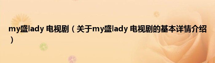 本文关于my盛lady 电视剧的基本详情介绍就讲解完毕,希望对大家有所帮助。