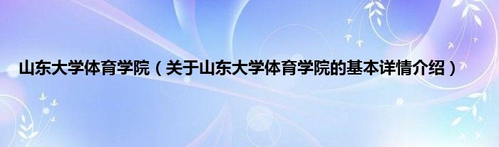 本文关于山东大学体育学院的基本详情介绍就讲解完毕,希望对大家有所帮助。