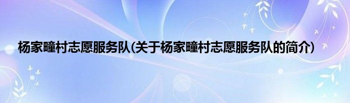 杨家疃村志愿服务队(关于杨家疃村志愿服务队的简介)