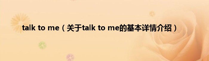 本文关于talk to me的基本详情介绍就讲解完毕,希望对大家有所帮助。
