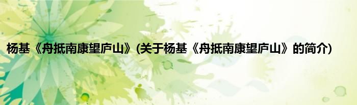 本文关于杨基《舟抵南康望庐山》的简介就讲解完毕,希望对大家有所帮助。