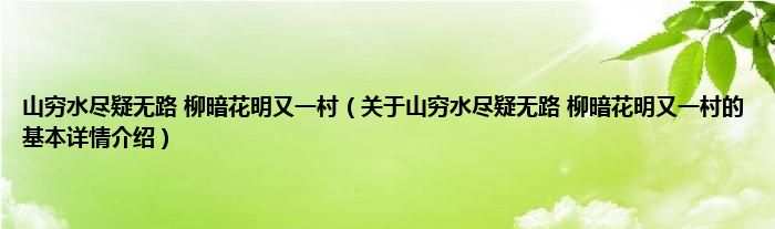 本文关于山穷水尽疑无路 柳暗花明又一村的基本详情介绍就讲解完毕,希望对大家有所帮助。