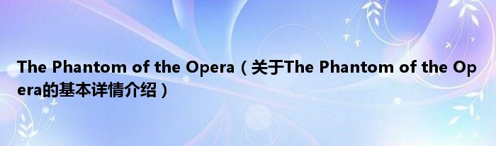 The Phantom of the Opera(关于The Phantom of the Opera的基本详情介绍)