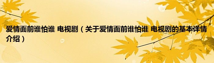 本文关于爱情面前谁怕谁 电视剧的基本详情介绍就讲解完毕,希望对大家有所帮助。