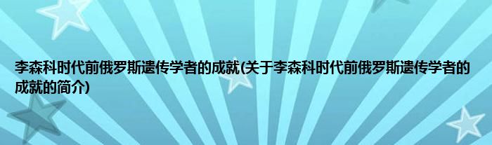 大家好,李森科时代前俄罗斯遗传学者的成就,关于李森科时代前俄罗斯遗传学者的成就的简介很多人还不知道,现在让我们一起来看看吧!