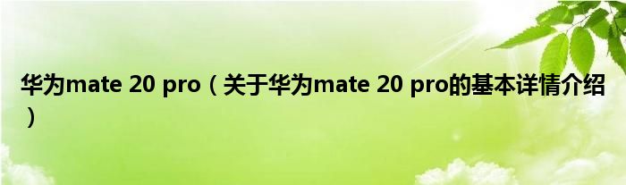 本文关于华为mate 20 pro的基本详情介绍就讲解完毕,希望对大家有所帮助。