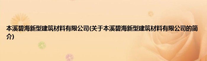 本文关于本溪碧海新型建筑材料有限公司的简介就讲解完毕,希望对大家有所帮助。