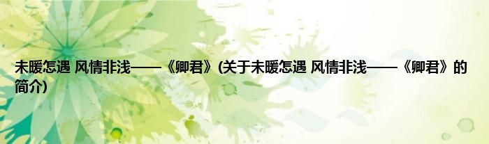 本文关于未暖怎遇,风情非浅——《卿君》的简介就讲解完毕,希望对大家有所帮助。