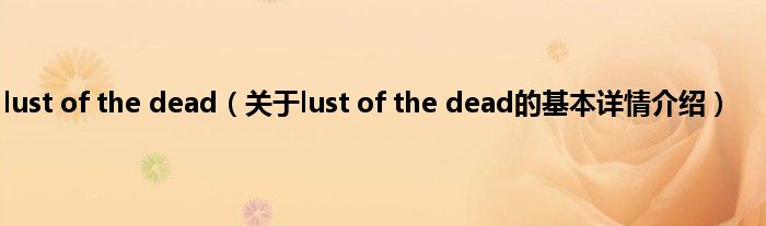 本文关于lust of the dead的基本详情介绍就讲解完毕,希望对大家有所帮助。