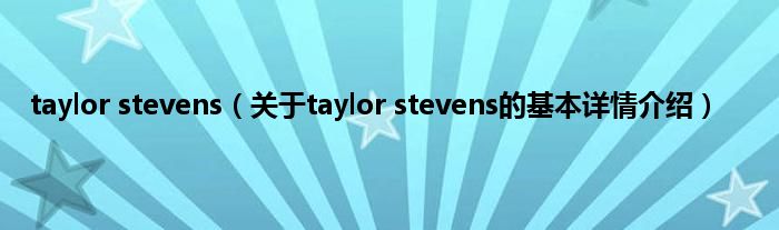 本文关于taylor stevens的基本详情介绍就讲解完毕,希望对大家有所帮助。