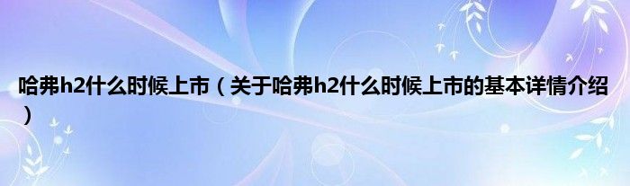 本文关于哈弗h2什么时候上市的基本详情介绍就讲解完毕,希望对大家有所帮助。