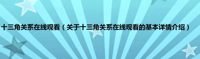 本文关于十三角关系在线观看的基本详情介绍就讲解完毕,希望对大家有所帮助。