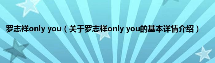本文关于罗志祥only you的基本详情介绍就讲解完毕,希望对大家有所帮助。