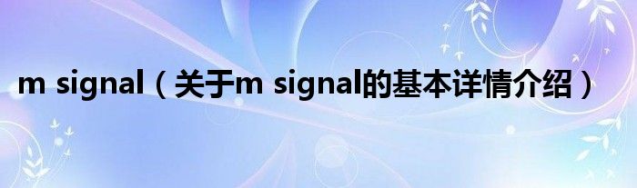 本文关于m signal的基本详情介绍就讲解完毕,希望对大家有所帮助。