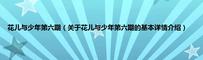 本文关于花儿与少年第六期的基本详情介绍就讲解完毕,希望对大家有所帮助。