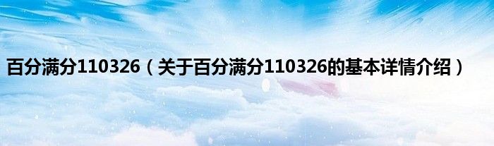 本文关于百分满分110326的基本详情介绍就讲解完毕,希望对大家有所帮助。