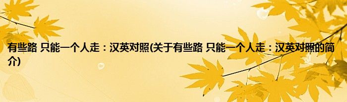 本文关于有些路,只能一个人走:汉英对照的简介就讲解完毕,希望对大家有所帮助。