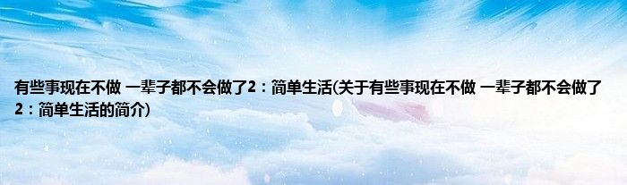 本文关于有些事现在不做,一辈子都不会做了2:简单生活的简介就讲解完毕,希望对大家有所帮助。
