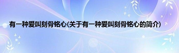 本文关于有一种爱叫刻骨铭心的简介就讲解完毕,希望对大家有所帮助。