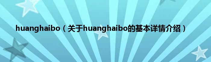本文关于huanghaibo的基本详情介绍就讲解完毕,希望对大家有所帮助。