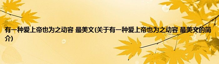 大家好,有一种爱上帝也为之动容 最美文,关于有一种爱上帝也为之动容 最美文的简介很多人还不知道,现在让我们一起来看看吧!