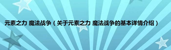 本文关于元素之力 魔法战争的基本详情介绍就讲解完毕,希望对大家有所帮助。