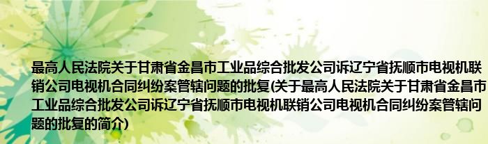 本文关于最高人民法院关于甘肃省金昌市工业品综合批发公司诉辽宁省抚顺市电视机联销公司电视机合同纠纷案管辖问题的批复的简介就讲解完毕,希望对大家有所帮助。