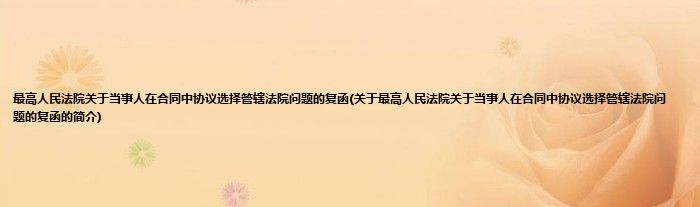 大家好,最高人民法院关于当事人在合同中协议选择管辖法院问题的复函,关于最高人民法院关于当事人在合同中协议选择管辖法院问题的复函的简介很多人还不知道,现在让我们一起来看看吧!